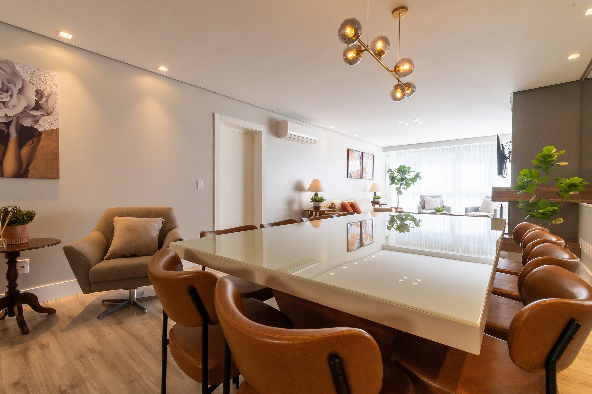 Todos os ambientes do apartamento são climatizados com aquecimento e ar-condicionado Split inverter, oferecendo opções de temperatura quente e fria.