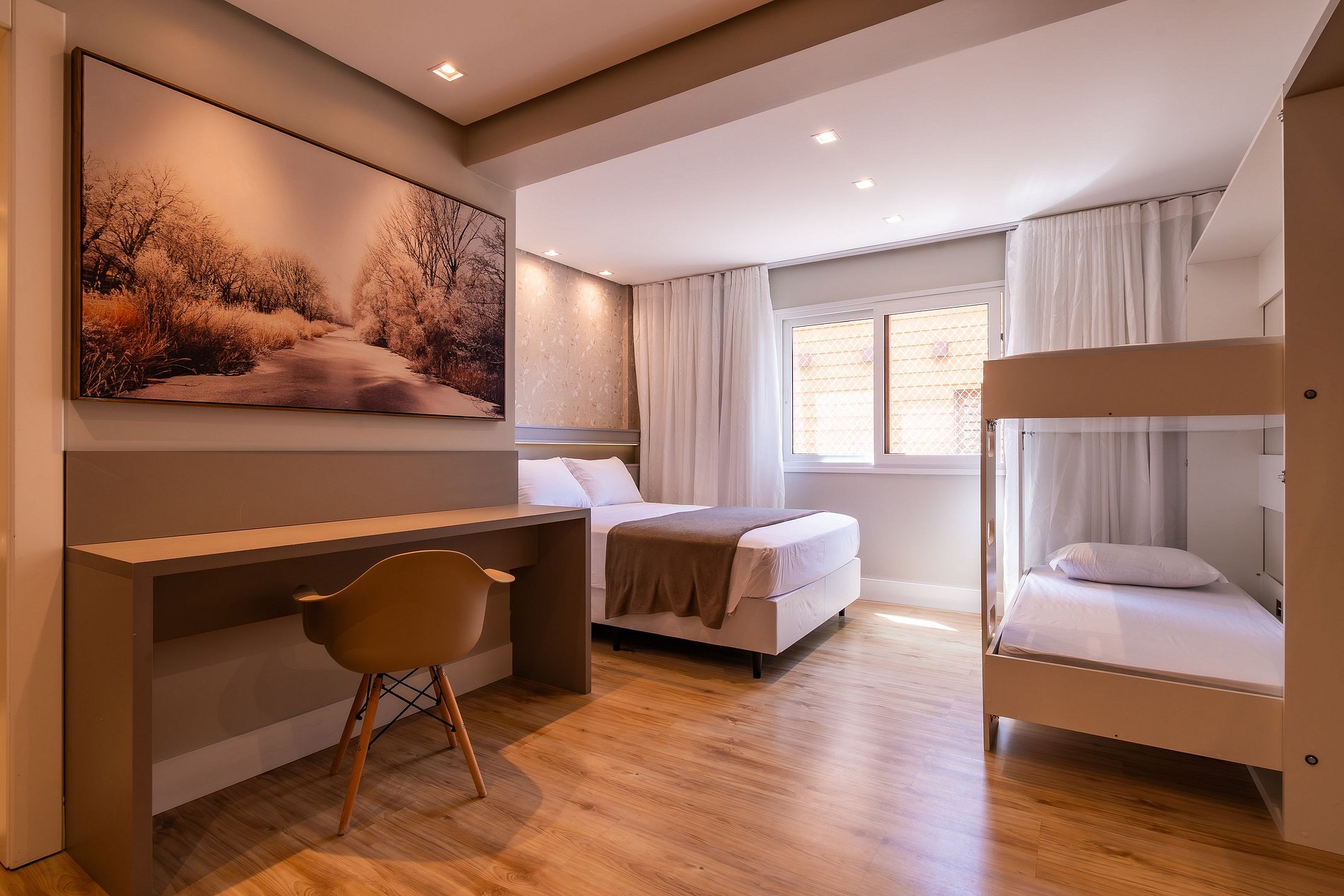 Seja para turismo, home office ou apenas para descansar com a família, nossos apartamentos oferecem tudo o que você precisa. Sinta-se em casa durante sua estadia em Gramado. Os apartamentos são totalmente equipados, com bancadas para home office, cozinhas completas, berço e carrinho de bebê, entre muitas outras comodidades.