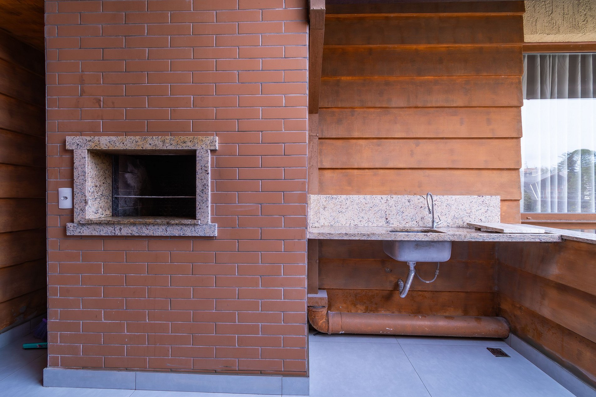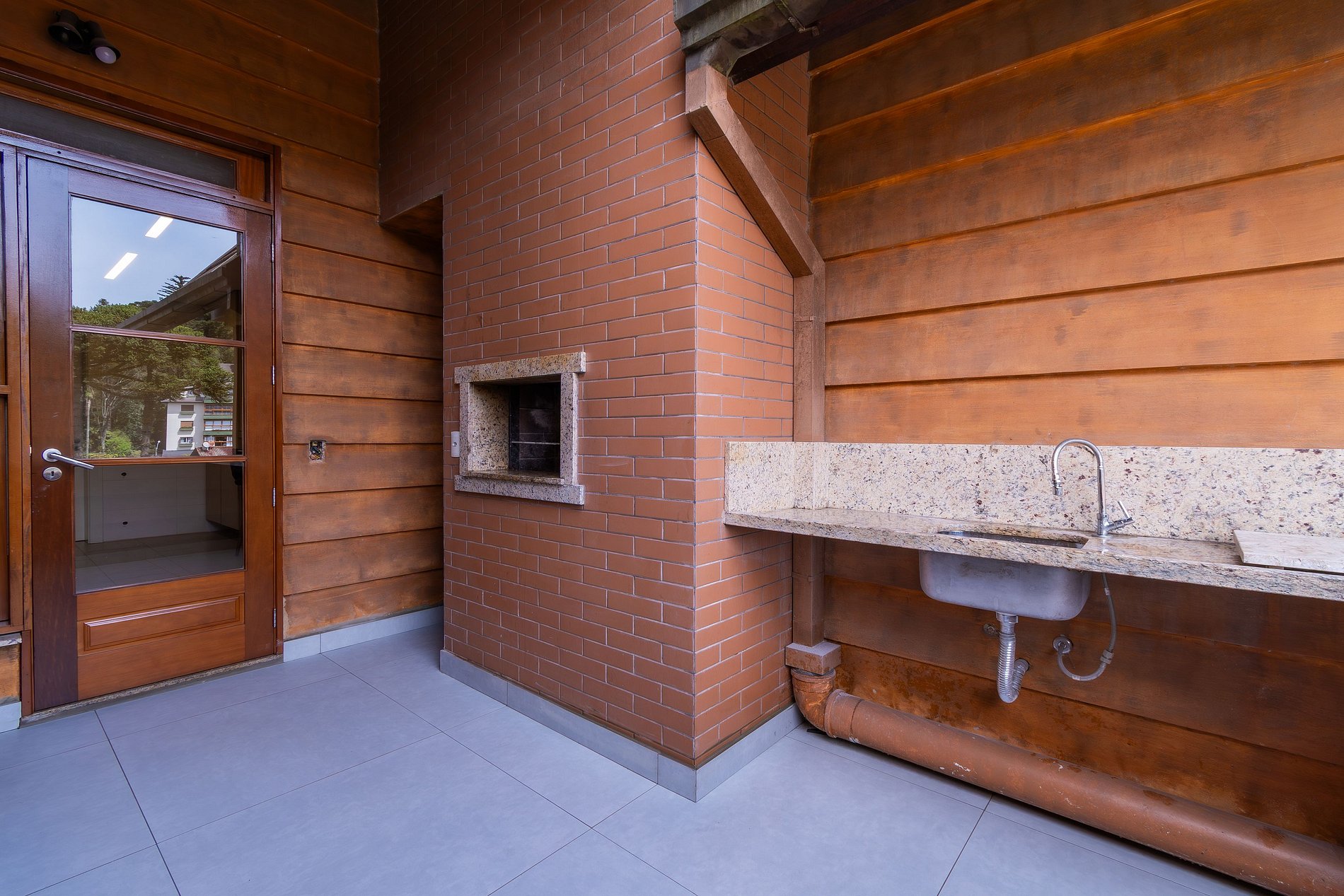 O imóvel possui uma churrasqueira a carvão interna, ideal para preparar churrascos com conforto.